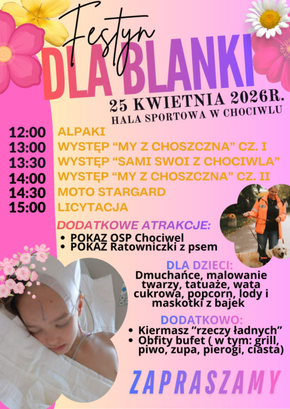 Festyn charytatywny odbędzie się w sobotę, 25 kwietnia w Hali Sportowej w Chociwlu. Początek zaplanowano na godzinę 12.