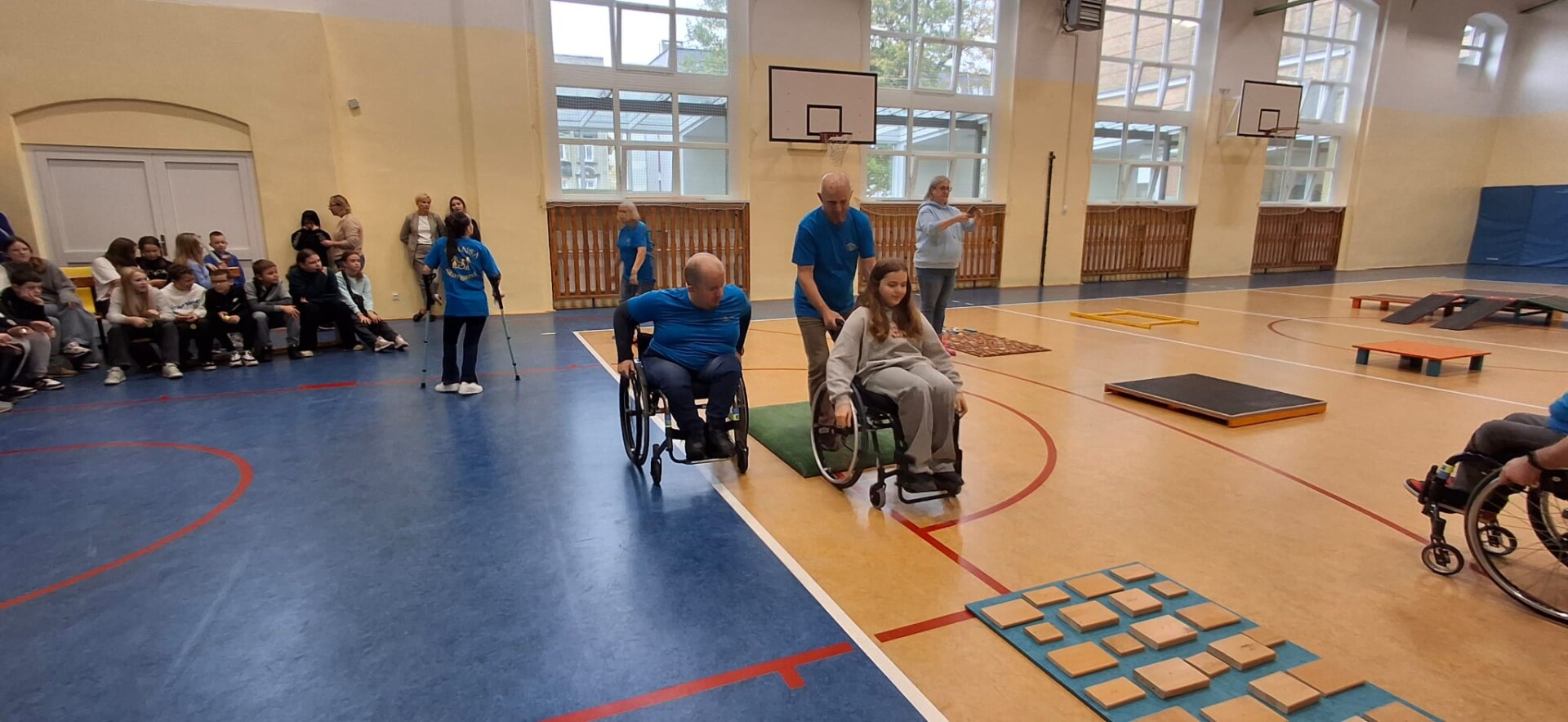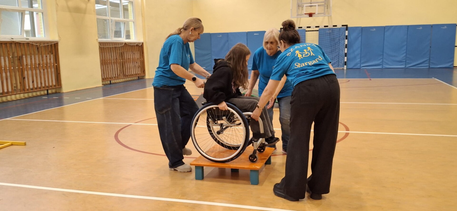 Dziś ekipa projektu zagościła w Szkole Podstawowej nr 3 w Stargardzie, gdzie uczniowie – m.in. z klas piątych – mieli prawdziwą lekcję życia. Chętni uczniowie i pedagodzy mieli możliwość zmierzyć się z torem przeszkód, z jakimi na co dzień spotykają się osoby poruszające się na wózku.